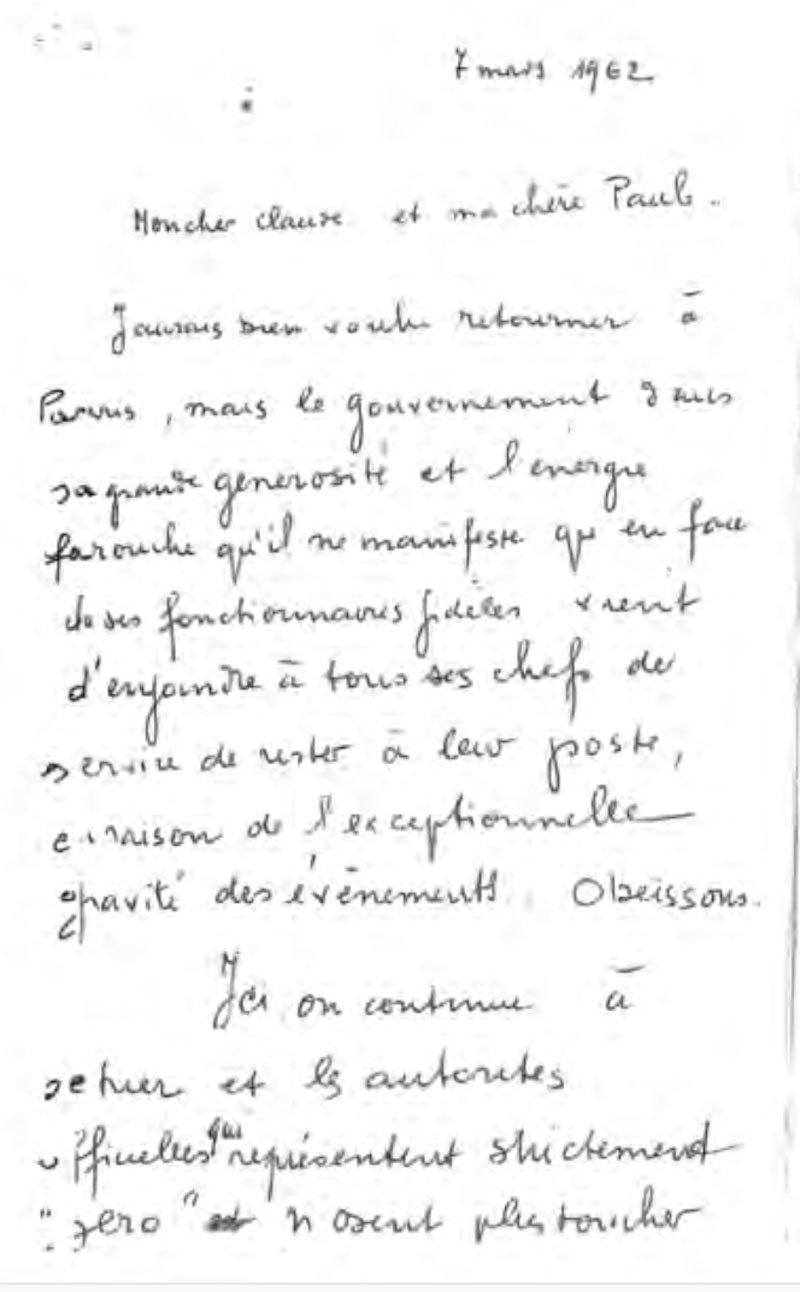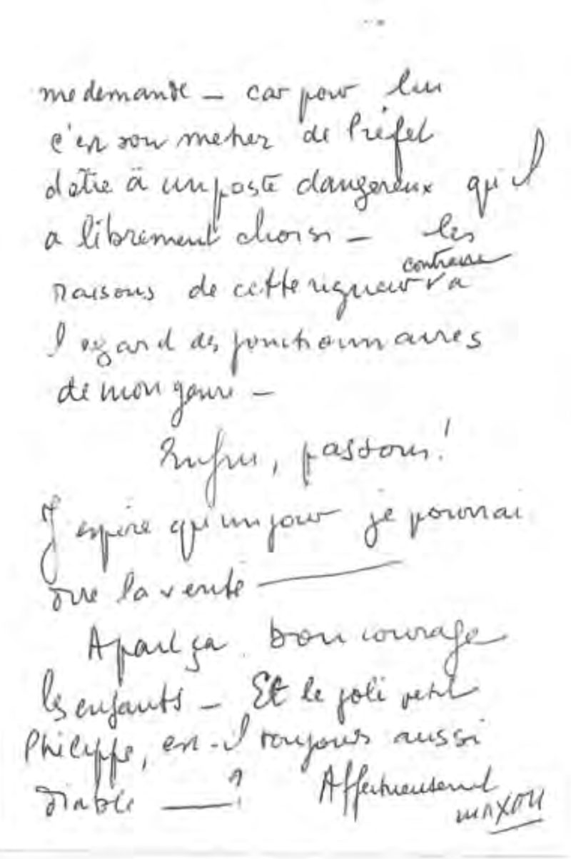 Le troisième document est la lettre écrite par Max Marchand à ses enfants, Paule et Claude Morain, le mercredi 7 mars 1962, huit jours avant l’attentat. Elle se passe de commentaires[2].